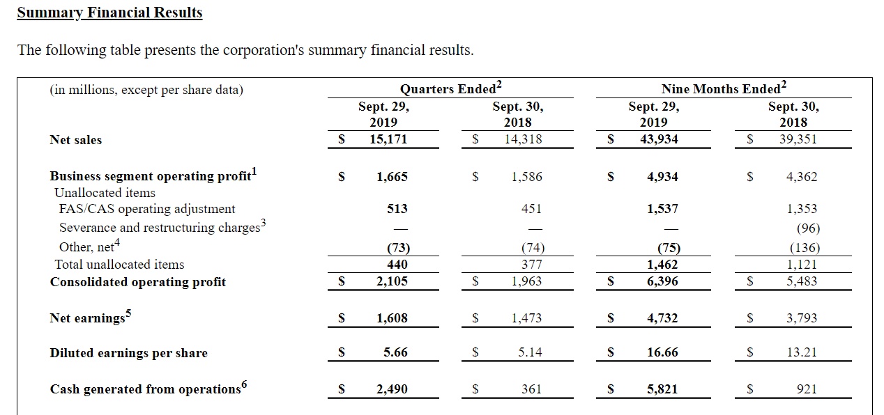 LMT2019年第三季度净销售额为151.7亿美元,同比增加6%或8.6亿美元。净收入为16亿美元,同比增加6%或1.35亿美元。摊薄后美股收益为5.66美元,去年同期为每股5.14美元。第三季度的经营产生的现金为25亿美元。