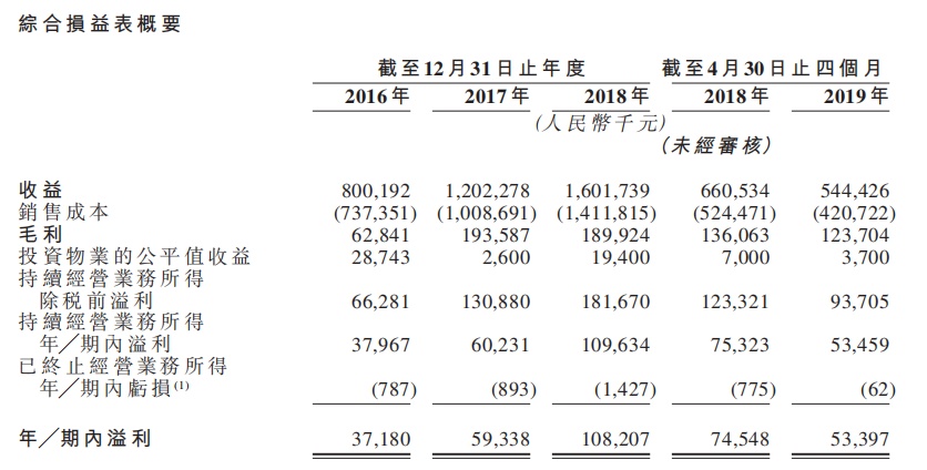 截至2016年、2017年、2018年12月31日及2019年4月30日,公司投资物业由独立物业估值师仲量联行进行估值。根据该估值,于2016年、2017年、2018年及截至2019年 4月30日止四个月,投资物业的公平值收益分别为人民币28.7百万元、人民币2.6百万元、人民币19.4元及人民币3.7百万元。