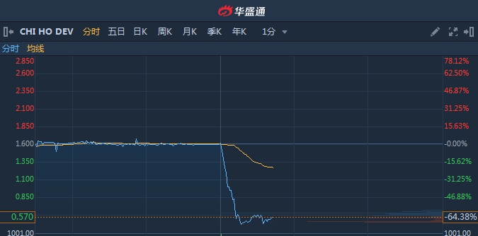 DEV(08423)午后惨遭洗仓,股价高位跳水暴跌70%。截至13时42分,跌64.38%,报价0.57港元,成交额8717万。值得注意的是,该股此前三个交易日累计涨幅超130%。