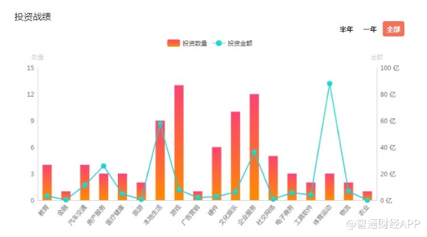 其中,投资数量最多的是游戏行业,共8个项目,如创梦天地(01119)、英雄互娱及ImbaTV等,本地生活、文化娱乐及企业服务分别投了6个、9个、10个项目。从投资的项目金额来看,投资数量最多的游戏却是很少的,仅有7.8亿元,主要是这次项目都属于早期投资。