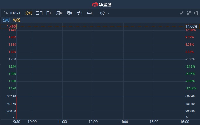 智通财经APP获悉,向中国际(01871)首日挂牌,公司发行1亿股,每股定价1.28港元,每手4000股,所得款项净额约1.01亿港元。截至9时20分,涨14.06%,报1.46港元,成交额6782.71万。