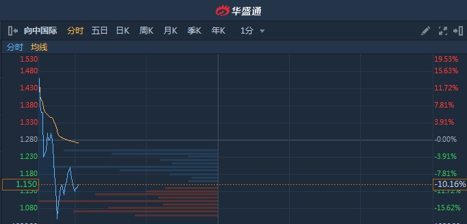 智通财经APP获悉,向中国际(01871)首日挂牌高开低走,盘中股价破发。截至10时02分,跌10.16%,报价1.15港元,成交额1.416亿。