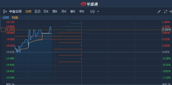 智通财经APP获悉,中金公司(03908)盘中现两宗大手成交,每股作价14.64元及14.65元,共涉及1742.36万股,共涉资2.55亿元。截至10时52分,涨0.96%,报价14.66港元,成交额2.656亿。