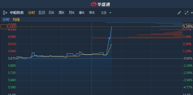 港股异动︱中船防务(00317)午后AH股均直线拉升 H股涨超5%