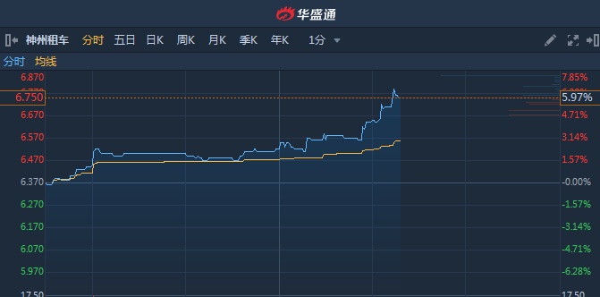 港股异动︱神州租车(00699)午后放量急升 涨近6%创近五个月新高