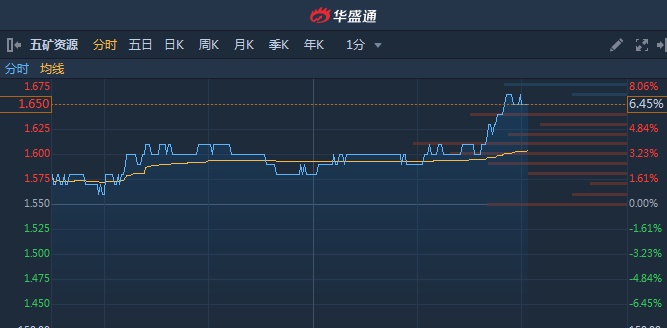 智通财经APP获悉,近期LME期铜大幅走高,相关概念个股延续涨势。截至15时03分,五矿资源(01208)涨6.45%,报价1.65港元,成交额4734万。值得注意的是,该股连续两日累计涨幅超9%。