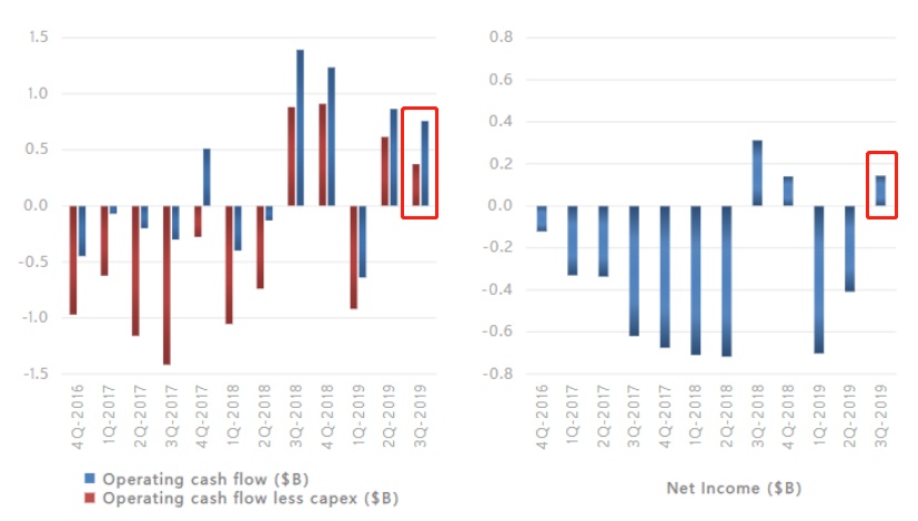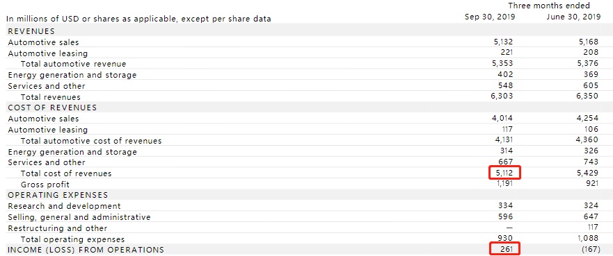 得益于公司CEO 马斯克(Elon Musk)的业务重组计划,在经过几轮的裁员,以及增加对利润低但销量激增的Model 3的投入后,公司的整体运营费用降到历史以来的最低水平,这同时还体现在规模效应下固定成本的平摊、制造和材料成本下降、与自动驾驶相关服务订阅有关的递延收入增加等因素的影响。