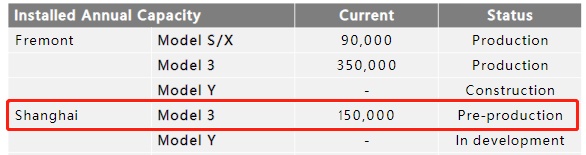 产能方面,目前特斯拉的弗里蒙特工厂对全系列产品的年产能总计为44万辆,其中Model S/X为9万辆,Model 3为35万辆;相比之下,上海工厂Model 3的年产能达15万,而Model Y也将会在该工厂进行生产。