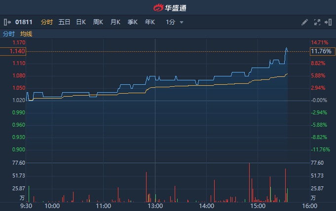 港股异动 | 中广核新能源(01811)尾盘涨超12% 突破所有均线创五个月新高