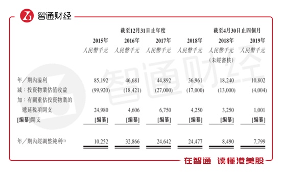 最终落到主营业务利润的时候,公司处于持续下滑的态势。智通财经APP了解到,由于公司投资物业估值收益每年都出现大幅变动,但跟公司主业经营状况又无关,因此公司业务经营利润要看刨除这些非经营项后的经调整利润。数据显示,公司2015-2018年及2019年前四月,年内利润分别达到8519.2万元、4668.1万元、4489.2万元、3696.1万元及1080.2万元,去除投资物业估值收益,记回相关税项开支,再刨除近期的上市开支后,公司经调整利润分别为1025.2万元、3286.6万元、2464.2万元、2447.7万元及779.9万元。除了2016年大幅上涨租金后出现增长外,公司主营经营利润其实是逐年下滑的。