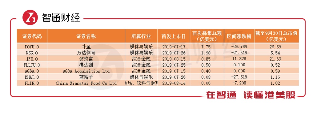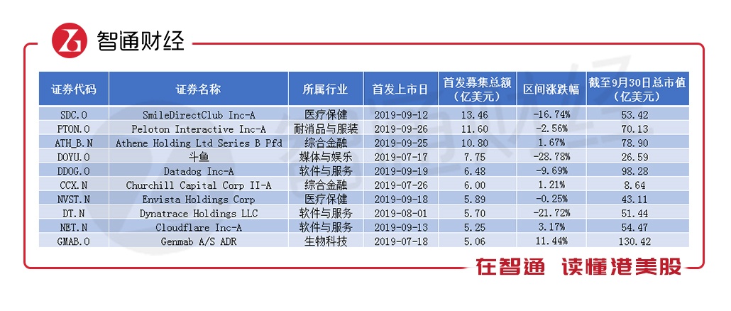 此外,中概股三季度最大IPO项目斗鱼(DOYU.US)也进入了美股三季度IPO规模前十排名。