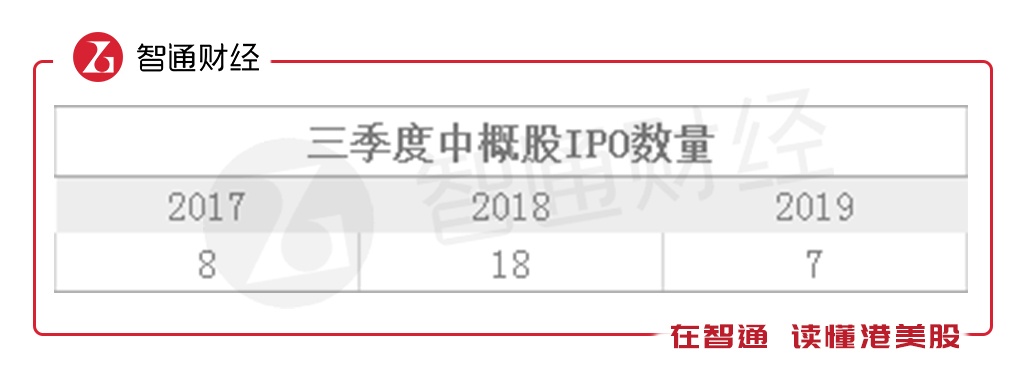 相比之下,三季度赴美IPO的中概股数量较去年同期出现锐减,由去年同期的18起锐减至今年仅7起,较2017年同期也有所减少。