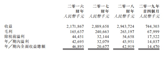 公司收益呈增长趋势,由二零一六财年的人民币2,171.9百万元增至二零一八财年的人民币2,943.7百万元,于整个往绩记录期间的复合年增长率为16.4%。毛利由二零一七财年的人民币240.7百万元增加9.4%至二零一八财年的人民币263.2百万元。年内溢利从二零一七财年的人民币32.1百万元增加人民币11.9百万元或37.1%至二零一八财年的人民币44.0百万元。年内经调整溢利由二零一七财年的人民币32.1百万元增加55.5%至二零一八财年的人民币49.9百万元。