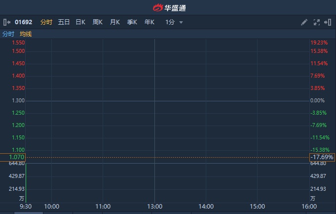 智通财经APP获悉,登辉控股(01692)首日挂牌,公告显示,公司发行1亿股,每股定价1.3港元,每手2000股,所得款项净额约9050万港元。截至发稿,跌17.69%,报1.07港元,成交额3123.64万港元。