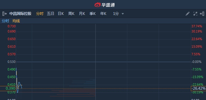 智通财经APP获悉,中昌国际控股(00859)大股东贷款融资违约致控股权易主,今日复牌股价急挫,暂居跌幅榜首位。截至9时40分,跌26.42%,报价0.39港元,成交额196.8万。