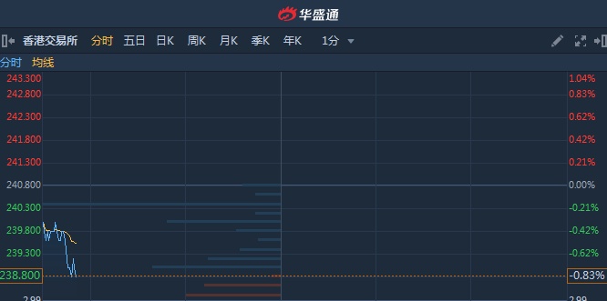 智通财经APP获悉,港交所(00388)市前现两宗大手成交,每股作价240.409元及240.41元,共涉及80.56万股,共涉资1.94亿元。截至9时50分,跌0.75%,报价239港元,成交额2.512亿。