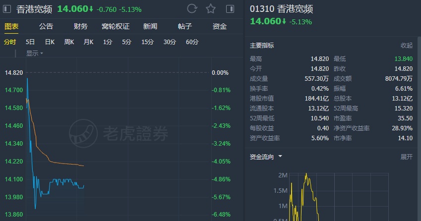 该行表示,维持对香港宽频“增持”投资评级及目标价15港元,建议投资者可待股价调整后进行吸纳。
