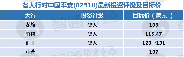 三、各大行对中国平安(02318)最新投资评级及目标价
