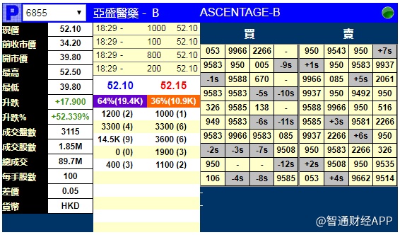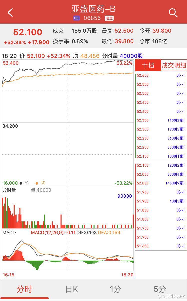 智通财经APP获悉,亚盛医药-B(06855)将于10月28日挂牌,上市前夕,辉立证券暗盘交易显示其收报52.10港元,较招股价34.20港元涨52.339%。每手100股,不计手续费,每手赚1790港元。