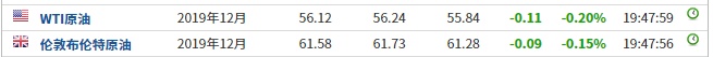 截止发稿,WTI原油跌0.20%,报56.12美元/桶。布伦特原油跌0.15%,报61.58美元/桶。
