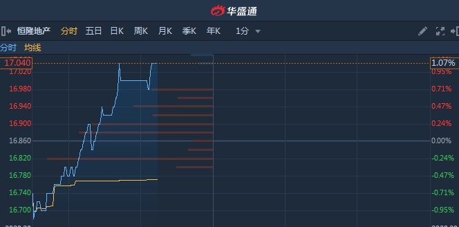 智通财经APP获悉,恒隆地产(00101)盘中现两宗大手成交,每股作价16.70元,共涉及710.41万股,共涉资1.19亿元。截至11时14分,涨1.07%,报价17.04港元,成交额6.098亿。