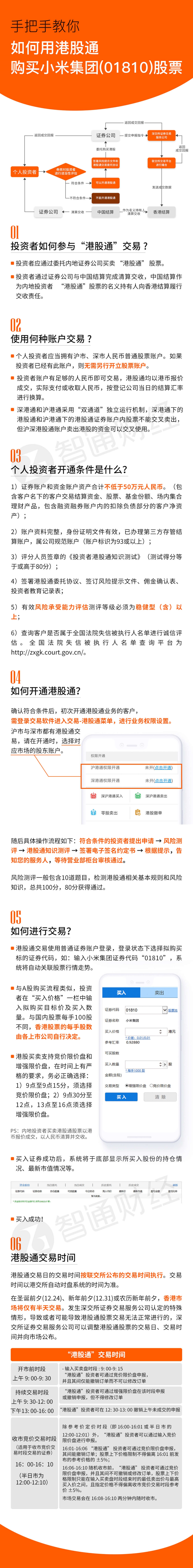 那么,作为内地个人投资者,究竟该如何开通港股通并购买港股通名单内的股票?以小米为例,通过下方一图便可一探究竟。