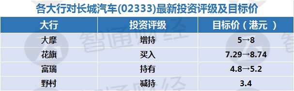 三、各大行对长城汽车(02333)最新投资评级及目标价