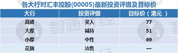 二、各大行对汇丰控股(00005)最新投资评级及目标价
