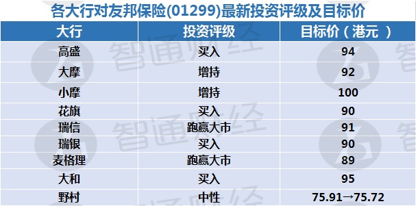八、各大行对友邦保险(01299)最新投资评级及目标价