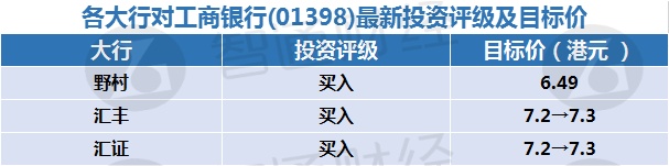六、各大行对工商银行(01398)最新投资评级及目标价