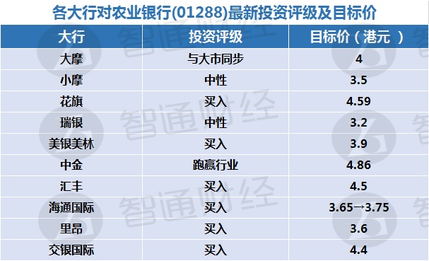 七、各大行对农业银行(01288)最新投资评级及目标价