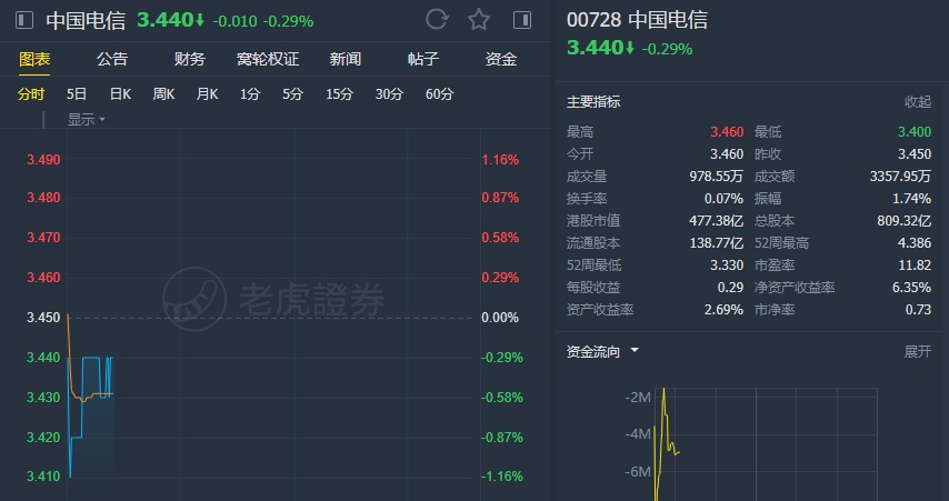 该行指出,中国电信第三季业绩不及预期,相信收入趋势将是关键,但估计公司在无线领域中竞争仍跑赢同业,重申对其“买入”投资评级及目标价4.87港元,此按综合方式作估值。