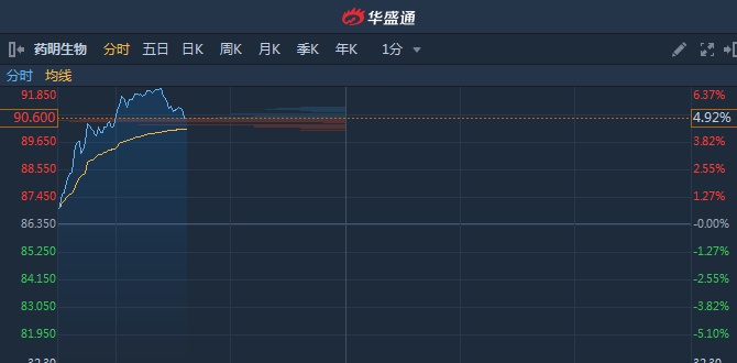 智通财经APP获悉,南下资金持续加仓,药明生物(02269)延续涨势,盘中一度升逾6%高见91.8港元,创逾52周新高,截至10时36分,涨4.92%,报价90.6港元,成交额4.02亿。值得注意的是,该股连续两日累涨超10%。