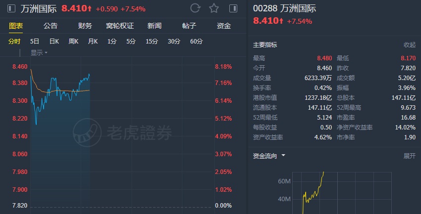 该行指出,公司第三季的盈利表现反映投资者释除部份忧虑,该行决定上调对万洲2019及2020年每股盈利预测分别5%及3%,调高目标价升4%,由9.4港元升至9.8港元,重申“买入”评级。
