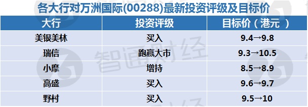 一、各大行对万洲国际(00288)最新投资评级及目标价
