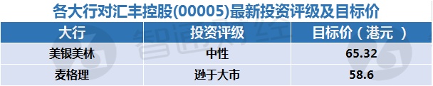 二、各大行对汇丰控股(00005)最新投资评级及目标价