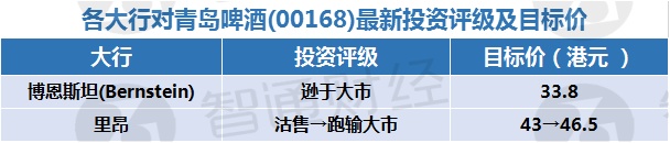 六、各大行对青岛啤酒(00168)最新投资评级及目标价