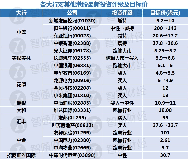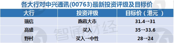 四、各大行对中兴通讯(00763)最新投资评级及目标价