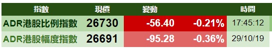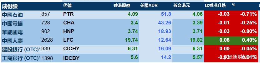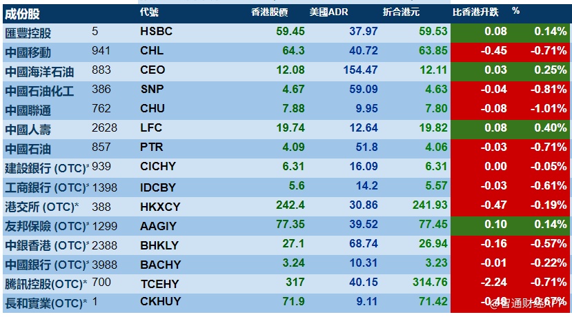 智通财经APP获悉,隔夜美股三大指数收跌,港股ADR指数向下,按比例计算,收报26730点,跌56.4点或0.21%。大型蓝筹涨跌不一,汇丰控股收报59.53元,较港收市涨0.08元;腾讯控股收报314.76元,较港收市跌2.24元。