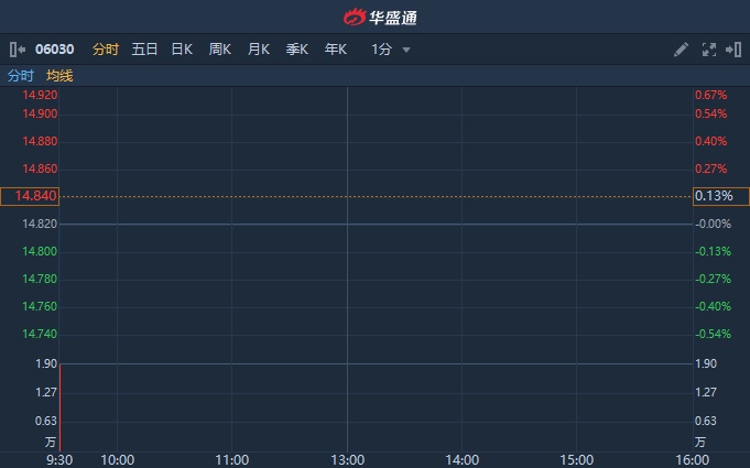 智通财经APP获悉,中信证券(06030)收购广州证券事项今日上会。该公司向上海证券交易所申请,公司A股自2019年10月30日(星期三)开市起停牌,待公司收到并购重组委审核结果后公告并复牌。H股早盘微涨,截至发稿,涨0.13%,报14.84港元,成交额3519.22万港元。