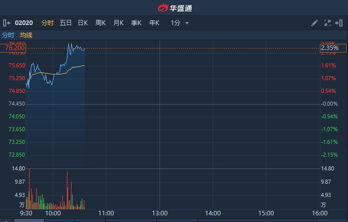 智通财经APP获悉,恒生指数成份股季度检讨将于11月8日进行。有市场人士猜测,市值逾2000亿港元的安踏体育(02020)有机会晋身蓝筹行列。截至发稿,安踏涨2.28%,报76.15港元,成交额1.51亿港元,盘中再次破顶刷新历史新高。