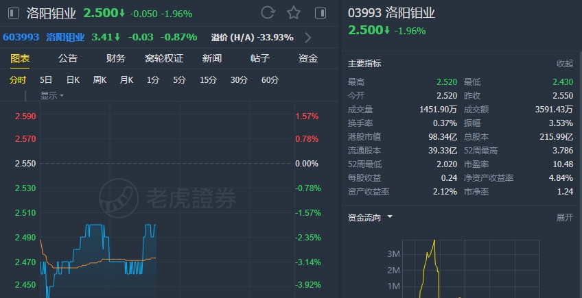 智通财经APP获悉,野村发布报告称,洛阳钼业(03993)第三季度净利同比下跌57%,收入则由其新收购之商品贸易公司IXM所带动,同比上升289%,环比上升326%。该行预计其全年盈利会同比下跌47%,或会有再下调的风险,但认为现时股价下行空间有限,维持“买入”评级,目标价维持2.8港元。