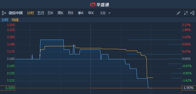 港股异动︱盘中现大手成交涉资5929.9万 德信中国(02019)现跌1.9%