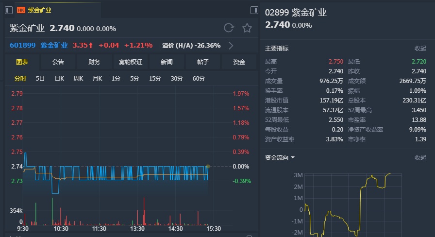 智通财经APP获悉,高盛发布报告称,紫金矿业(02899)前三季度业绩符合市场预期,但由于黄金销售量低于预期以及锌精矿的单位成本较高,因此未达到该行的预测水平。