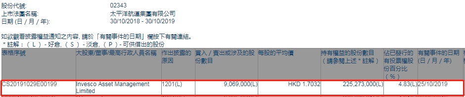 智通财经APP获悉,联交所最新资料显示,10月25日,Invesco Asset Mgt减持太平洋航运(02343)906.9万股,每股作价1.7032港元,总金额约为1544.63万港元。减持后最新持股数目为2.25亿股,最新持股比例为4.83%。