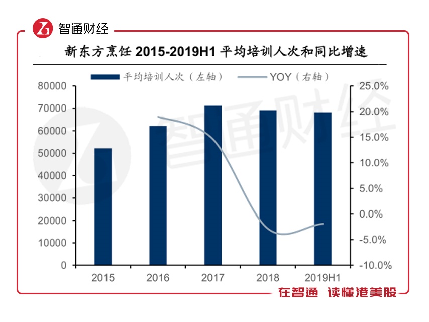 2019年上半年财务数据显示,公司经营全面大幅改善。智通财经APP了解到,2015-2018年,公司无论是持续经营收入、归母净利润率、平均培训人次数据增长都是持续放缓的,公司新培训人次同比增长2017、2018年维持在13%左右的水平。2019年上半年,公司经营全面改善,其中持续经营收入18.21亿元人民币(单位下同),同增26.6%;净利润3.12亿元,同增44.2%;记回以股份为基础支付的7569万元和上市开支1943.5万元后的经调整净利润为4.08亿元,同增88.1%。