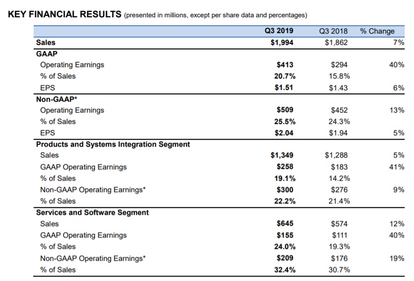 智通财经APP获悉,美东时间10月30日美股盘后,摩托罗拉解决方案公司(MSI.US)公布了2019年第三季度财报,财报显示,MSI本季度营收20亿美元,同比增长7%。