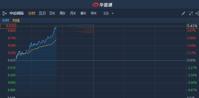 智通财经APP获悉,半导体板块普涨,中芯国际(00981)盘中放量拉涨逾5%,突破所有均线。截至10时47分,涨5.41%,报价9.93港元,成交额1.033亿。值得注意的是,该股将于下月12日发布三季报。