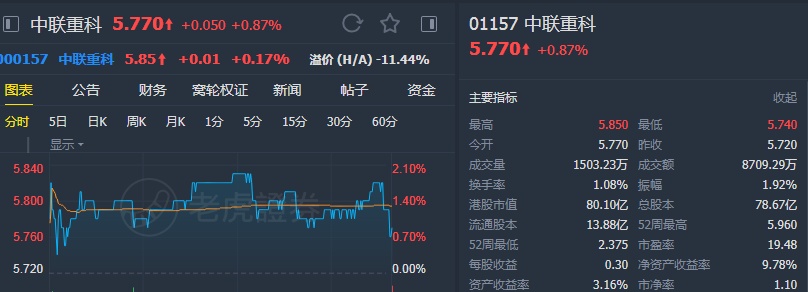 该行表示,上调中联重科2019至2021年盈利预测9%/1%/1%,以反映混凝土机械及起重机的销售增加。目标价相应由5.95港元上调至6.49港元,维持“买入”评级。