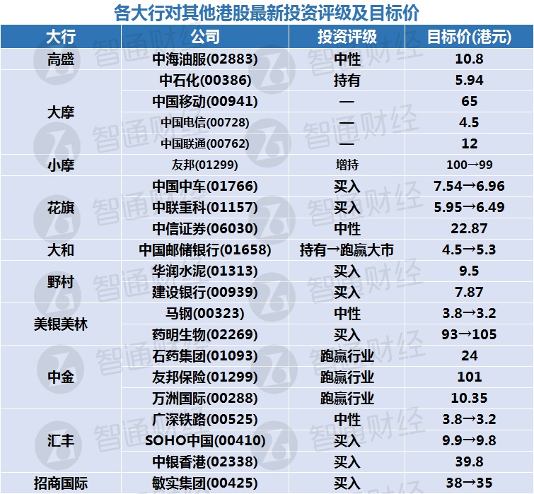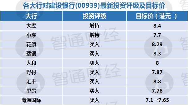 二、各大行对建设银行(00939)最新投资评级及目标价